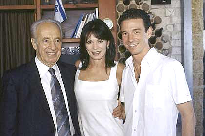 Berben mit Shimon Peres (l.) und Sohn Oliver: Alles gute