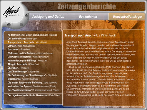 Kategorien "Verfolgung und Ghettos", "Exekutionen" und "Konzentrationslager"