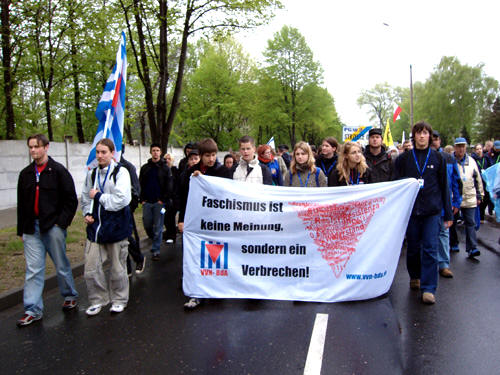 Transparent der VVN-BdA die erstmals an dem "Marsch der Lebenden" teilnahm.