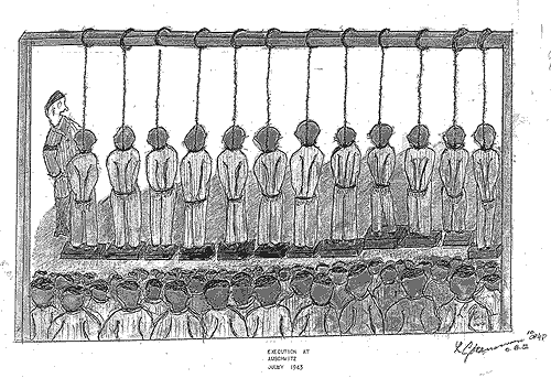 Leon Greenman, Execution in Auschwitz July 1943, Drawing