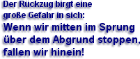 Aber es muss klar festgestellt werden: der Rückzug birgt eine große Gefahr