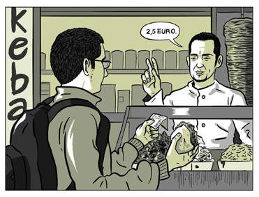 Spaziergang eines frischangekommenen israelischen Touristen durch Berlin bis