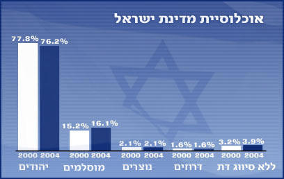 Die israelische Bevölkerung wuchs 2004 um 1,8% (wie 2003).
