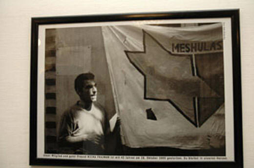 vor dem Centrum Judaicum mit Plakaten jüdischer Künstler aus den 20er