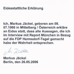 Eine eidesstattliche Erklärung, die report München vorliegt, besagt