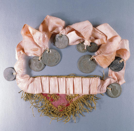 Amulettbeutel mit Münzen für jüdische Säuglinge,