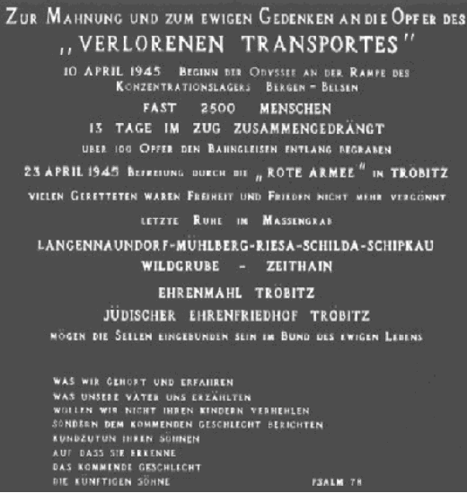 gefunden. Der Todeszug aus Bergen-Belsen ist als "Zug der Verlorenen" oder