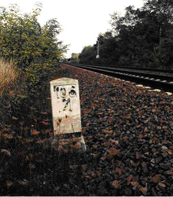 am Bahndamm der Kilometerstein 101,6. Der Todeszug war hier am 20. April