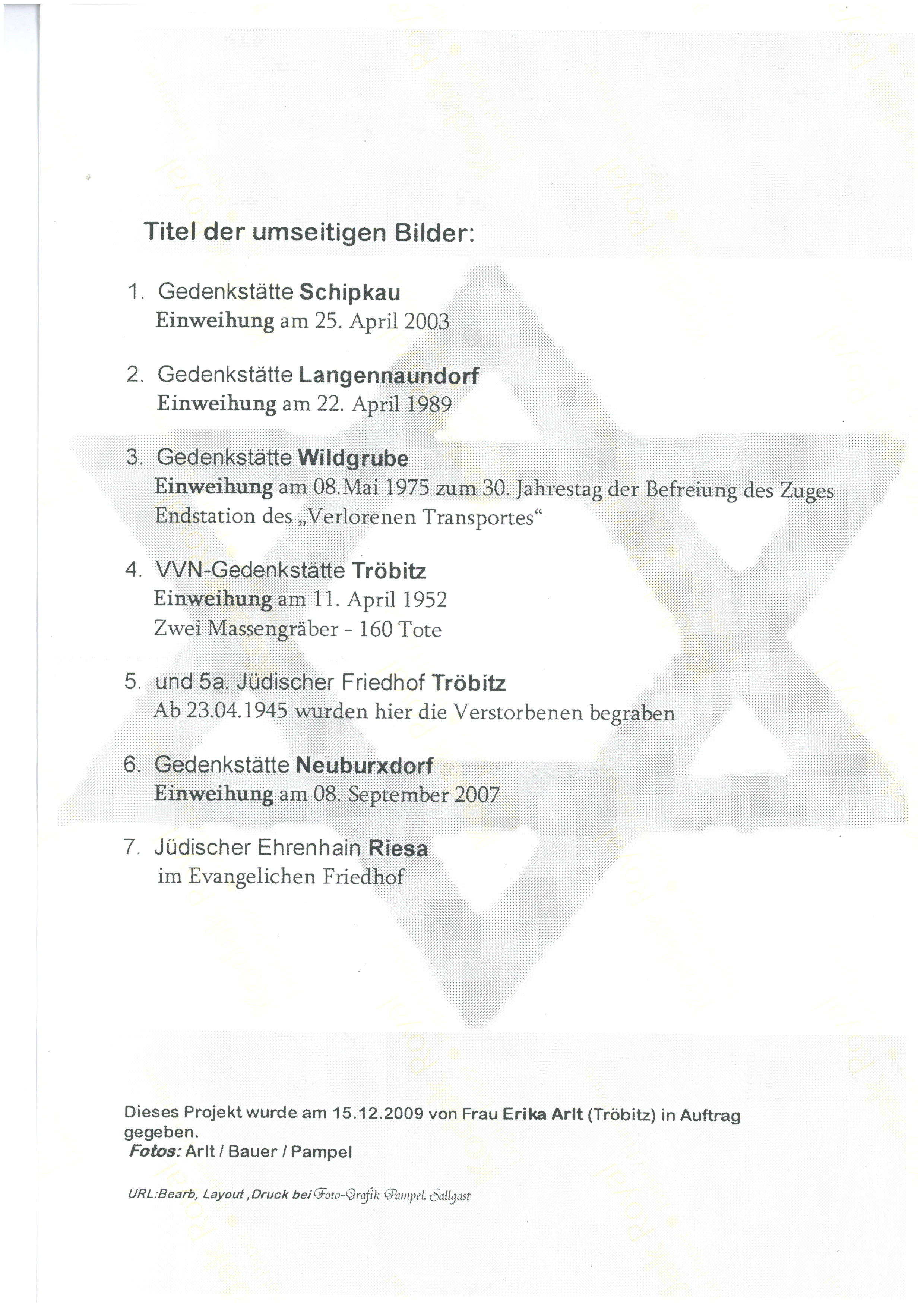 ©Erika Arlt: "Die jüdischen Gedenkstätten Tröbitz, Wildgrube,