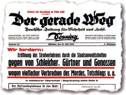 Zu Hitlers ersten Opfern gehört 1933 der Journalist Fritz Gerlich, der ihm