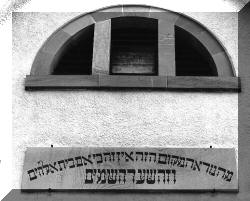 Kirche. Über dem Eingang ist eine Inschrift in deutscher und hebräischer