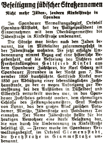 die Jüdenstraße in Kinkelstraße [...] umbenannt."