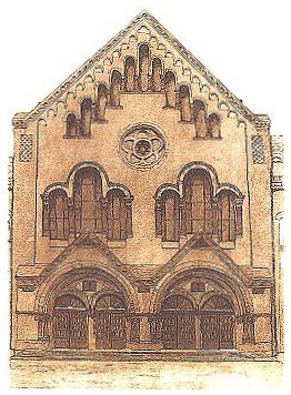 In 1903-1904 it was built by Johann Hoeniger with 2000 seats. It is situated in a court yard and remained undamaged. Originally a Reform Synagogue with organ, choir loft and mixed seating, this practice is no longer followed. In 1940, the building was confiscated and used as an army store.