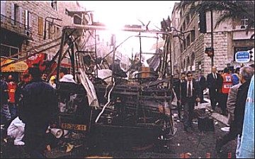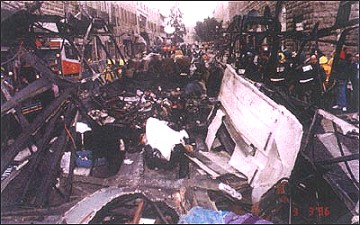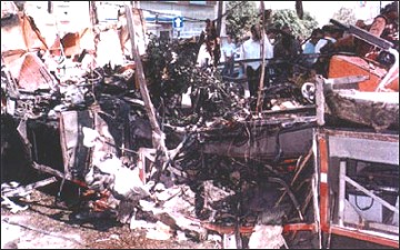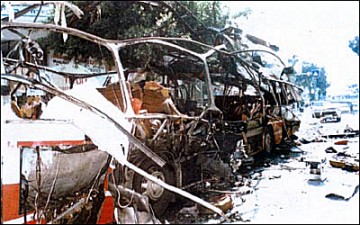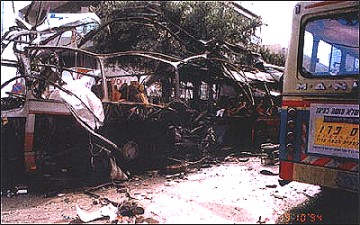 Bombing of Number 5 Bus on Dizengoff Street in Tel Aviv.