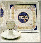 Fuer die an diesem Abend genau vorgeschriebene Speiseordnung benutzt man ein besonderes Geschirr, die sogenannte Sederschuessel. Diese ist meistens gar keine Schuessel, sondern eine Platte mit 6 Schaelchen darauf. Jedes der Schaelchen enthaelt eine der symbolischen Speisen: