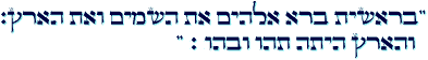 bara Elohim et haShamajim v'et haArez, v'haArez hajtah tohu v'bohu..."
