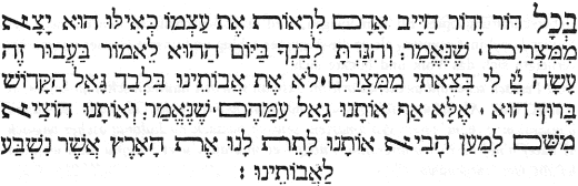 "B'chol Dor vaDor chajav Adam lir'ot et azmo k'ilu hu jaza miMizrajim.