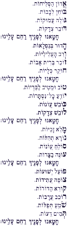Dieser Pijuth listet in alphabetischer Reihenfolge Eigenschaften Gottes