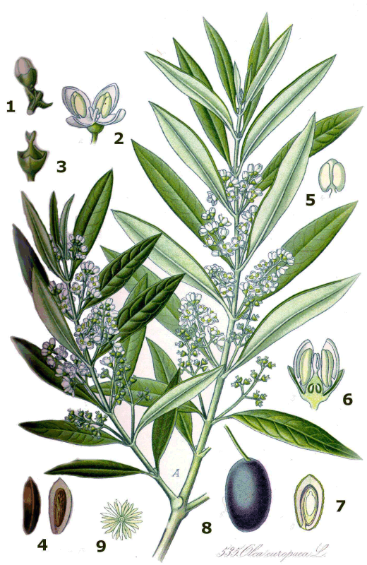 Olea europaea (Köhler's Medizinal-Pflanzen, Köhler 1887)